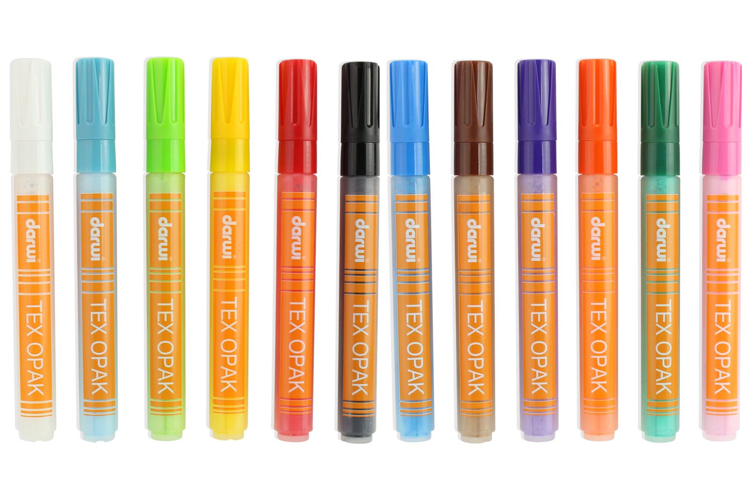 Маркеры Tex Opak от Darwi для украшения любых светлых и темных тканей. Содержащаяся в них краска Tex уже объединена с непрозрачным веществом для абсолютно непрозрачной визуализации без какой-либо прозрачности.