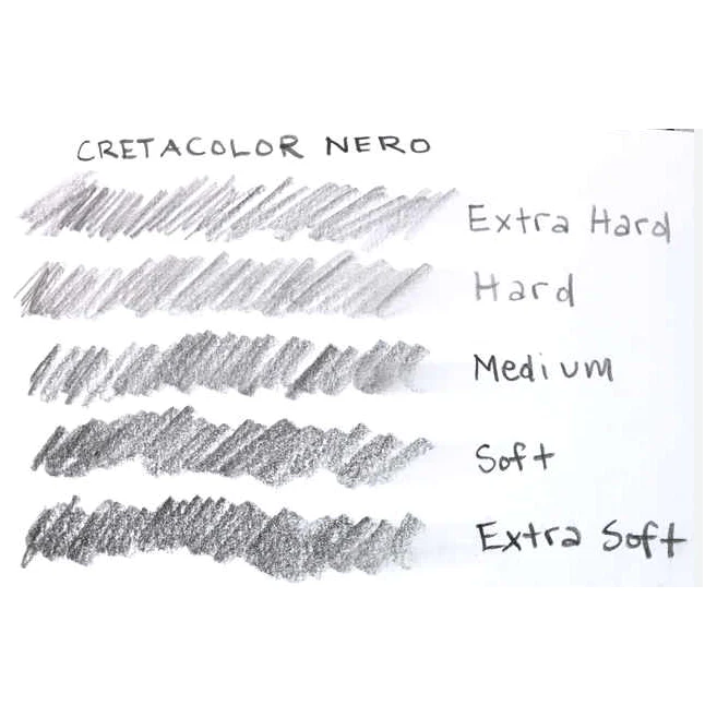 Угольный карандаш Nero даёт мягкий глянцевый чёрный штрих, который не размоется водой. Это что-то среднее между углём и приёмами, основанные на размывании водой для того чтобы получить яркий насыщенный штрих.