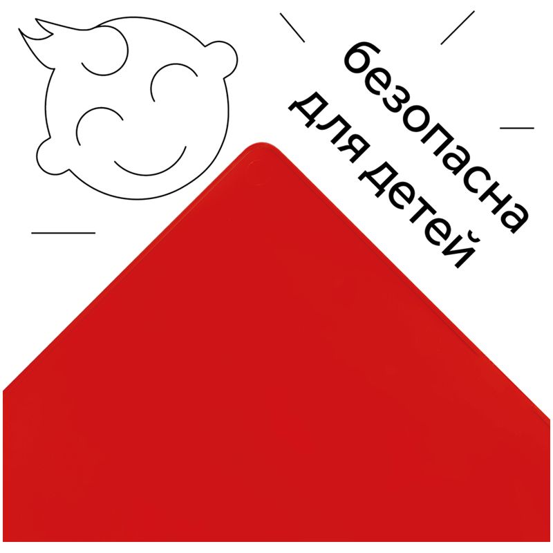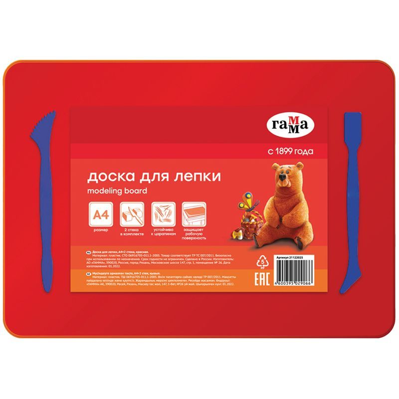 Доска для лепки изготовлена из пластика красного цвета, материал устойчив к царапинам.