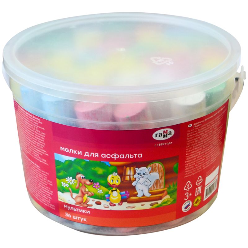 Асфальтовый мел ГАММА выпускается в двух типоразмерах: круглый и квадратный, фасуется в картонные коробки и пластиковые ведерки. Мел соответствует требованиям безопасности и безопасен для использования. Очень яркие цвета. Не пачкает руки и одежду. Мел отличается высокой укрывающей способностью, не крошится, легко стирается и не царапает поверхности.