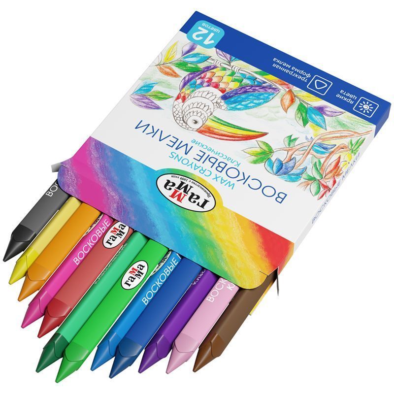 Набор из 12 восковых мелков ГАММА серии «Классическая» отлично подойдёт для рисования на бумаге, картоне и любой шероховатой поверхности. Мелки имеют эргономичную трёхгранную форму, длина мелка составляет 90 мм, а диаметр корпуса — 8 мм. В наборе 12 ярких цветов: жёлтый, зелёный, синий, красный, чёрный, коричневый, оранжевый, розовый, бледно-розовый, фиолетовый, голубой, жёлто-зелёный. Они идеальны для первых начинаний ребенка в рисовании и раскрашивании, так как они удобно лежат в руке. Мелки производятся на основе натуральных растительных компонентов: воска и естественных пищевых красителей. Мелки не пачкают руки, не липнут, не имеют выраженного химического запаха. Каждый мелок обёрнут в бумажную гильзу и уже заточен.