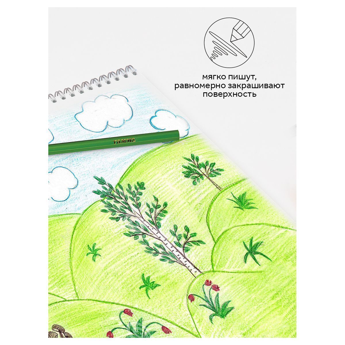 Ребенку не придется сильно давить на карандаш – рисунок получится ярким и равномерно закрашенным.