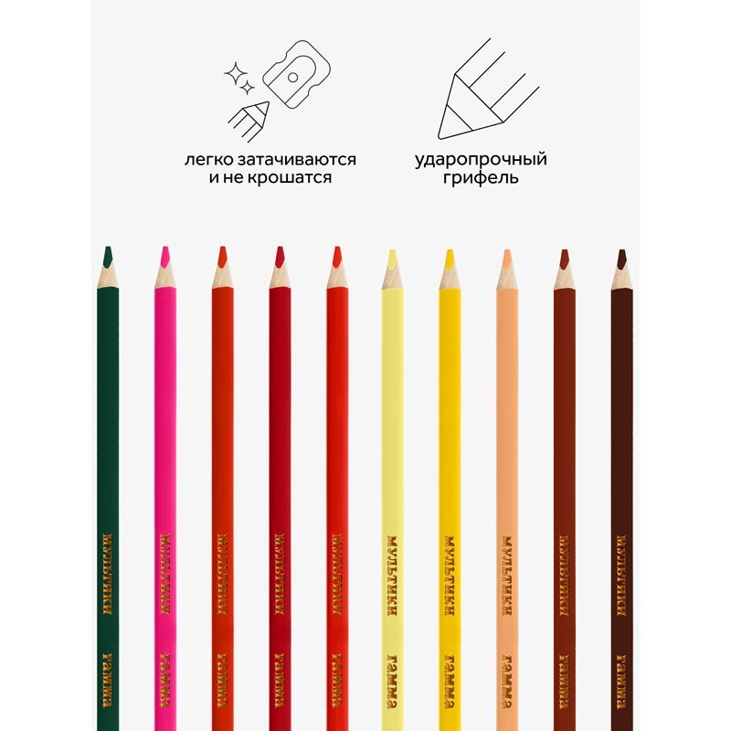 Цветные карандаши ГАММА серии «Мультики» выполнены в эргономичном трехгранном корпусе, который подскажет ребенку, как правильно держать инструмент во время творческих занятий.