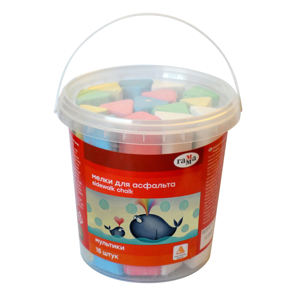 Набор треугольных мелков для рисования на асфальте ГАММА серии «Мультики» подходит для рисования на любой шероховатой поверхности и состоит из 15 мелков в 5 цветах: белый, желтый, зеленый, синий, красный.