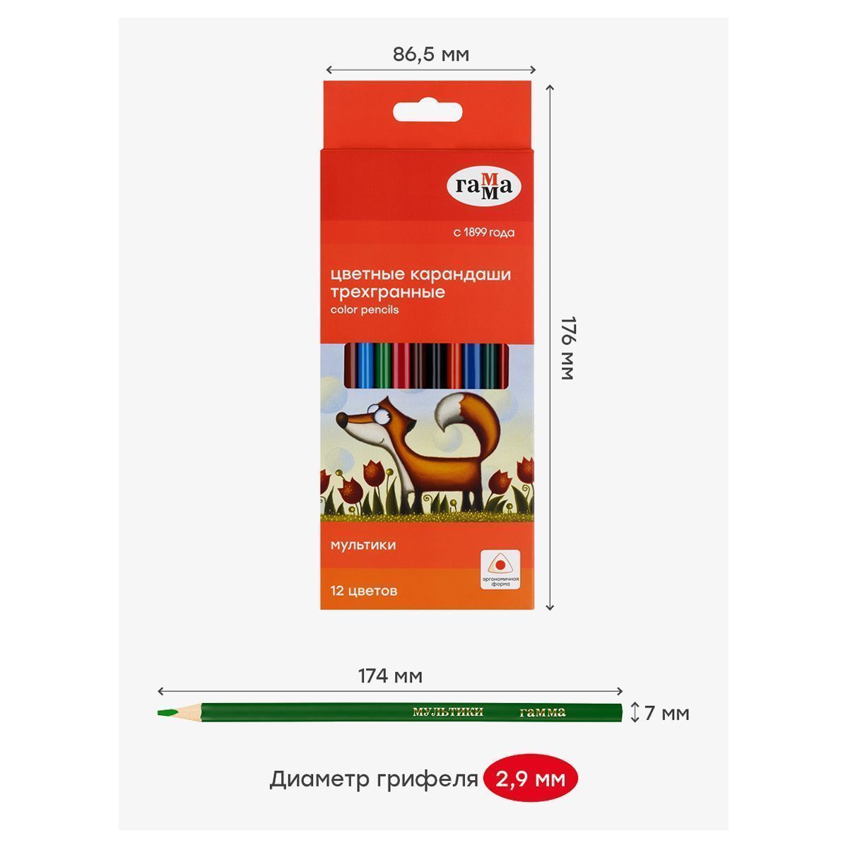 Цветные карандаши ГАММА серии «Мультики» выполнены в эргономичном трёхгранном корпусе, который подскажет ребенку, как правильно держать карандаш во время творческих занятий.
