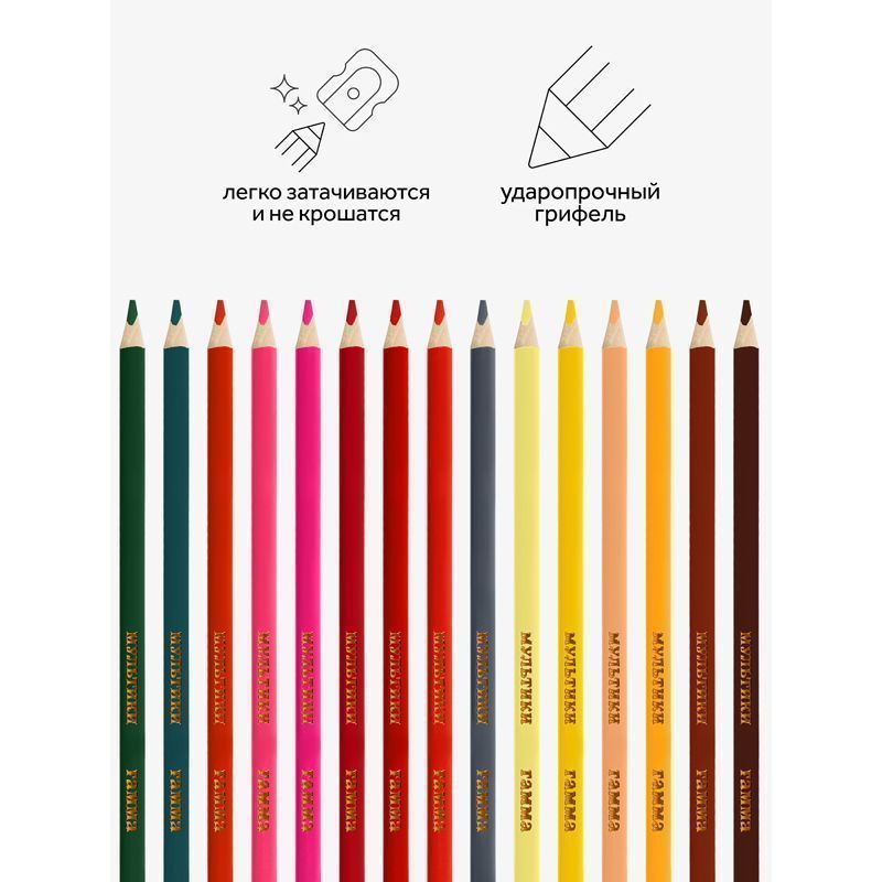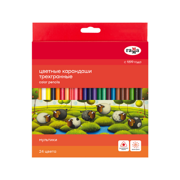 Цветные карандаши ГАММА серии «Мультики» выполнены в эргономичном трехгранном корпусе, который подскажет ребенку, как правильно держать инструмент во время творческих занятий.