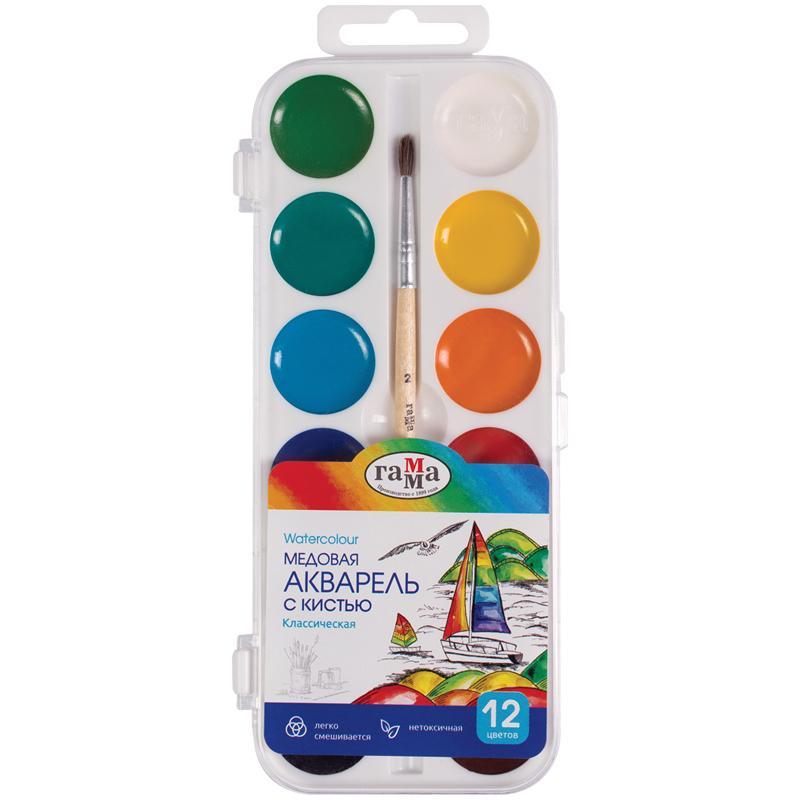 Медовая акварель детей от 7 лет, которые уже чувствуют себя взрослыми и хотят сами выбирать материалы для творчества. Благодаря качественному прозрачному связующему цвета акварели яркие, чистые и насыщенные. Краски расположены на одной подложке, как на палитре настоящего художника. Кисть ГАММА №2 из гривы пони в наборе.