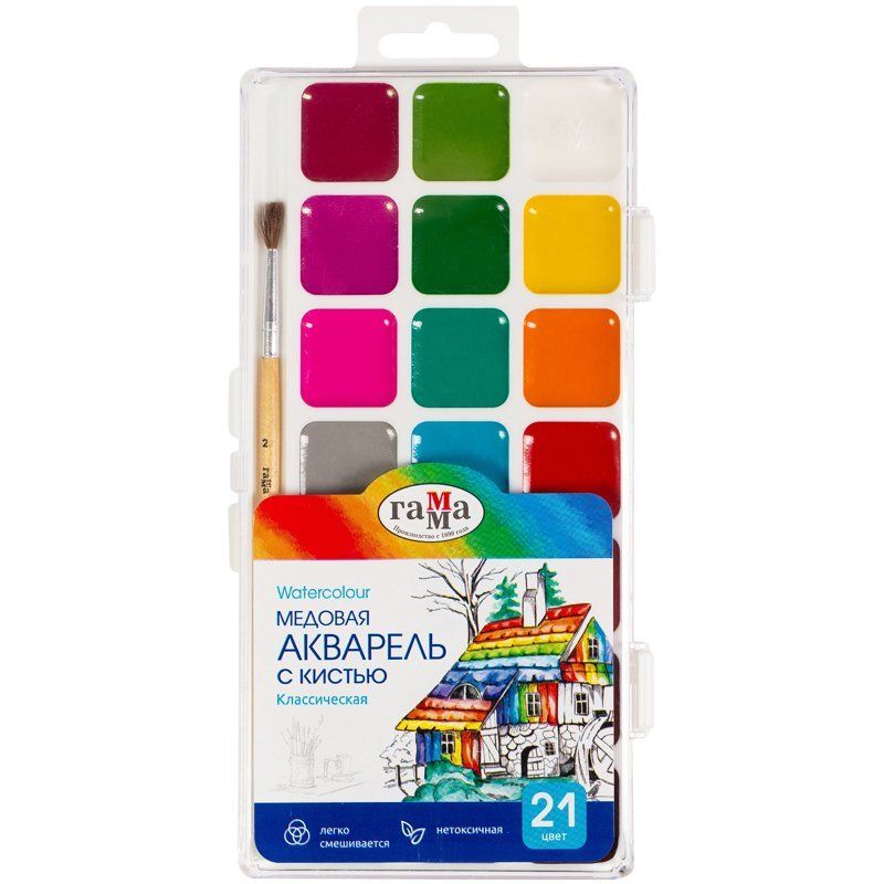 Медовая полусухая акварель в креативном оформлении для детей от 7 до 12 лет, которые уже чувствуют себя настоящими художниками. Благодаря качественному прозрачному связующему цвета акварели яркие, чистые и насыщенные. Краски расположены на одной подложке, как на палитре настоящего художника. Кисть ГАММА №2 из гривы пони в наборе.