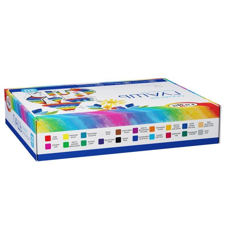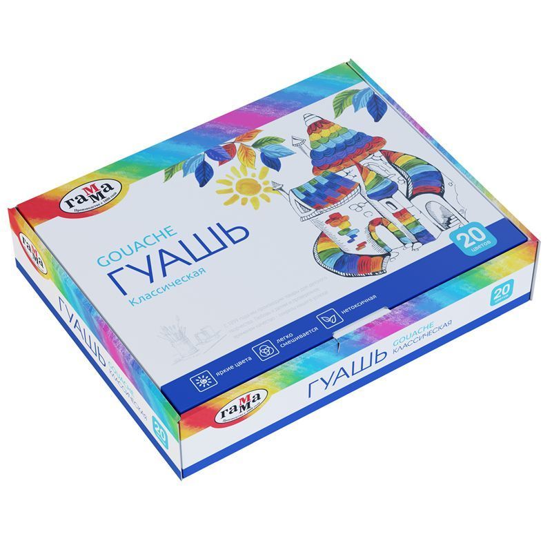 Гуашь серии "Классическая" предназначена для творческих занятий в школе и дома. Краска производится на основе качественного прозрачного связующего вещества, обеспечивающего чистоту цвета. Плотная, укрывистая текстура красок хорошо смешивается, равномерно наносится практически на любую основу. При высыхании дает бархатистый матовый эффект. Цветовая палитра гуаши данной серии состоит из классических оттенков краски. Гуашь фасуется в пластиковые герметичные баночки с завинчивающейся крышкой. Объем баночки - 20 мл.