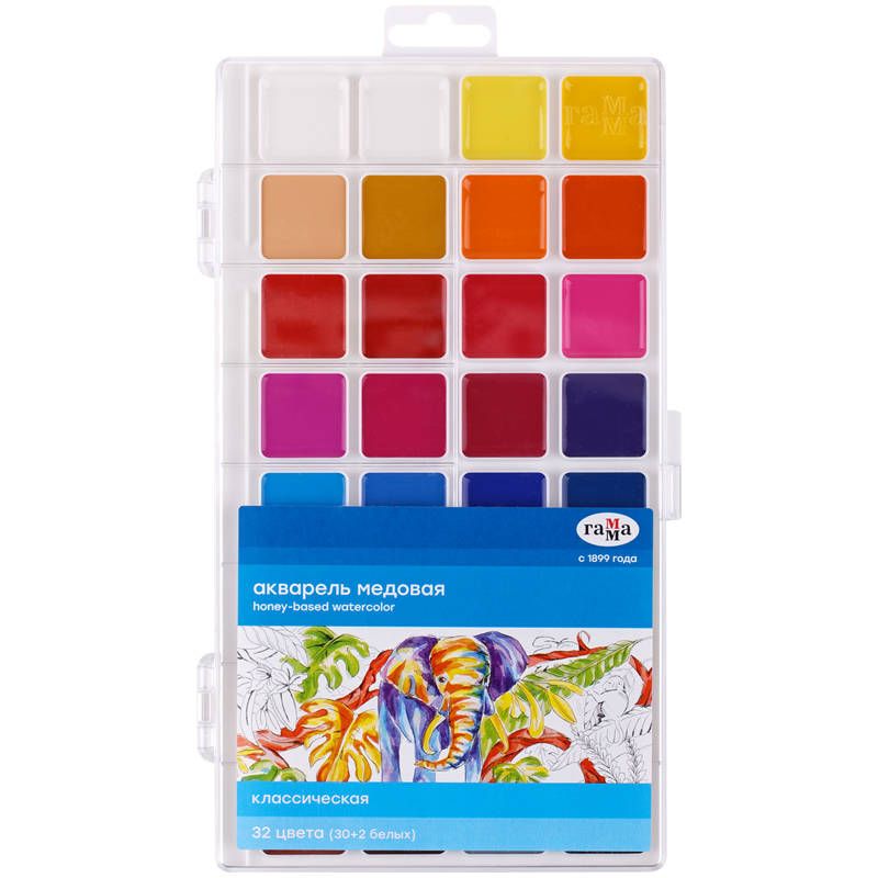 Акварель ГАММА "Классическая" медовая 32 цв, без кисти, пластик. упаковка RE-1009199