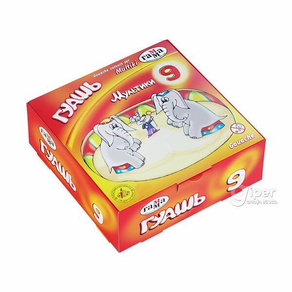 В набор «Мультики» входят гуашевые краски 9 цветов. Пластиковые баночки объемом 20 мл в картонной коробке. Гуашь подходит для детского творчества, при необходимости разбавляется водой, безвредна, быстро высыхает, легко смывается с рук и одежды.
