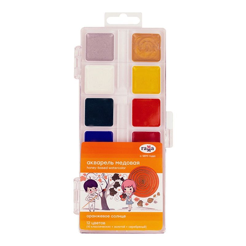 Медовая акварель «Оранжевое солнце» имеет расширенную палитру цветов, включающую классические цвета и цвета с различными эффектами.