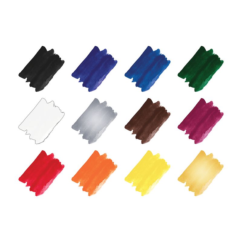 Кюветы с высокими бортиками и увеличенным расстоянием между красками предназначены для удобства в работе детей.