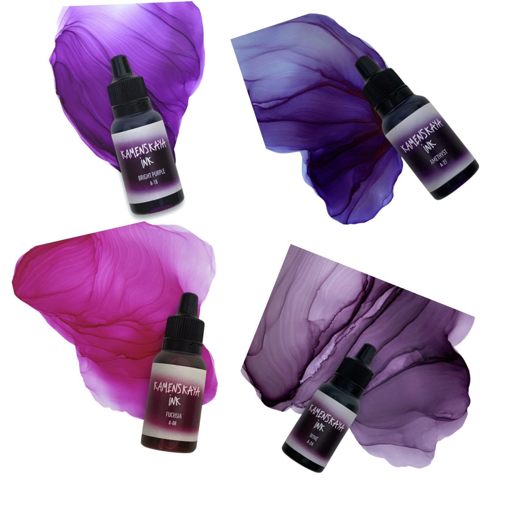 —Сет спиртовых (алкогольных) чернил Kamenskaya Ink №12, 4 x 15 мл K-00-00000566