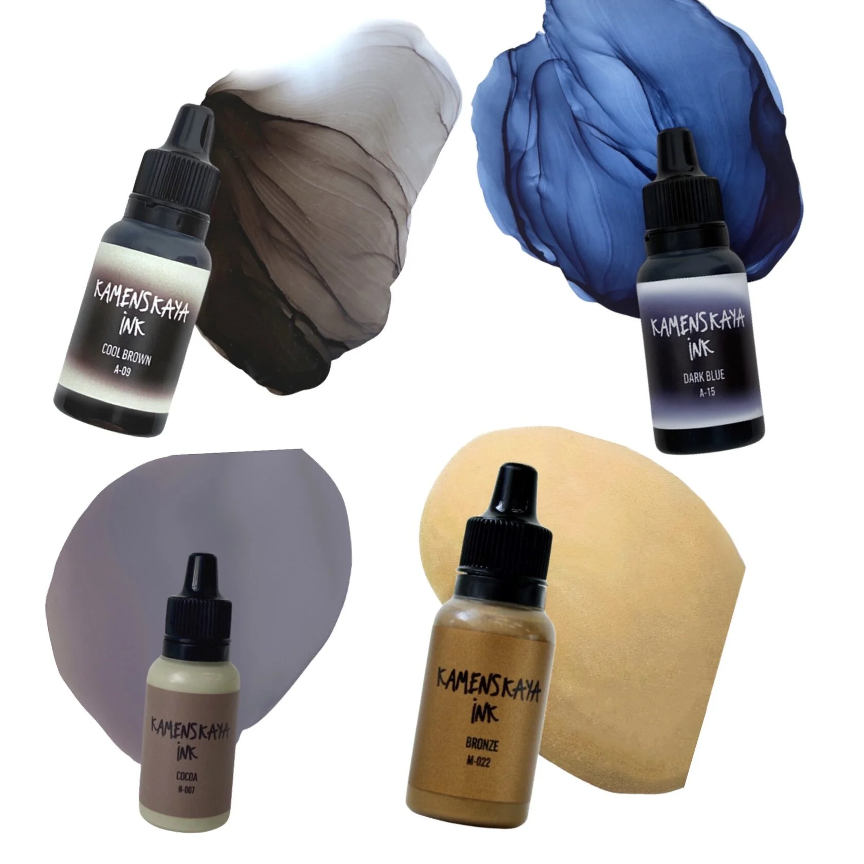 Авторские цветовые комбинации от Полины Каменской. Набор содержит комбинацию чернил из разных серий. Чернила прекрасно смешиваются друг с другом, дополняя друг друга, хорошо прилипают к синтетическим гладким поверхностям и быстро высыхают. Чернила очень концентрированные и должны быть разбавлены перед использованием с помощью раствора для смешивания.