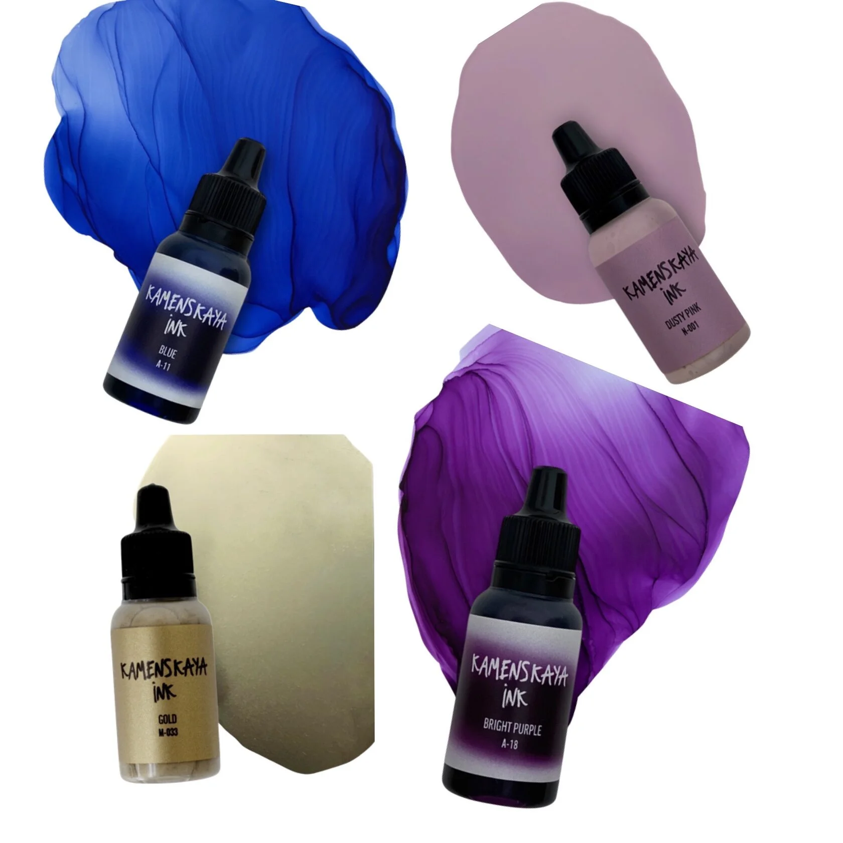 —Сет спиртовых (алкогольных) чернил Kamenskaya Ink №8, 4 x 15 мл K-00-00000562