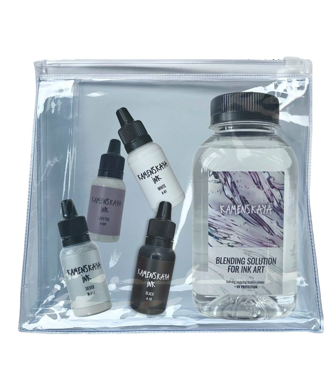 Авторское цветовые комбинации от Полины Каменской. Наборы содержат комбинации чернил из разных категорий. Краски прекрасно смешиваются, дополняя друг друга, прекрасно ложатся на синтетические гладкие поверхности и быстро сохнут. Чернила очень концентрированные и перед использованием должны быть разбавлены раствора для смешивания.