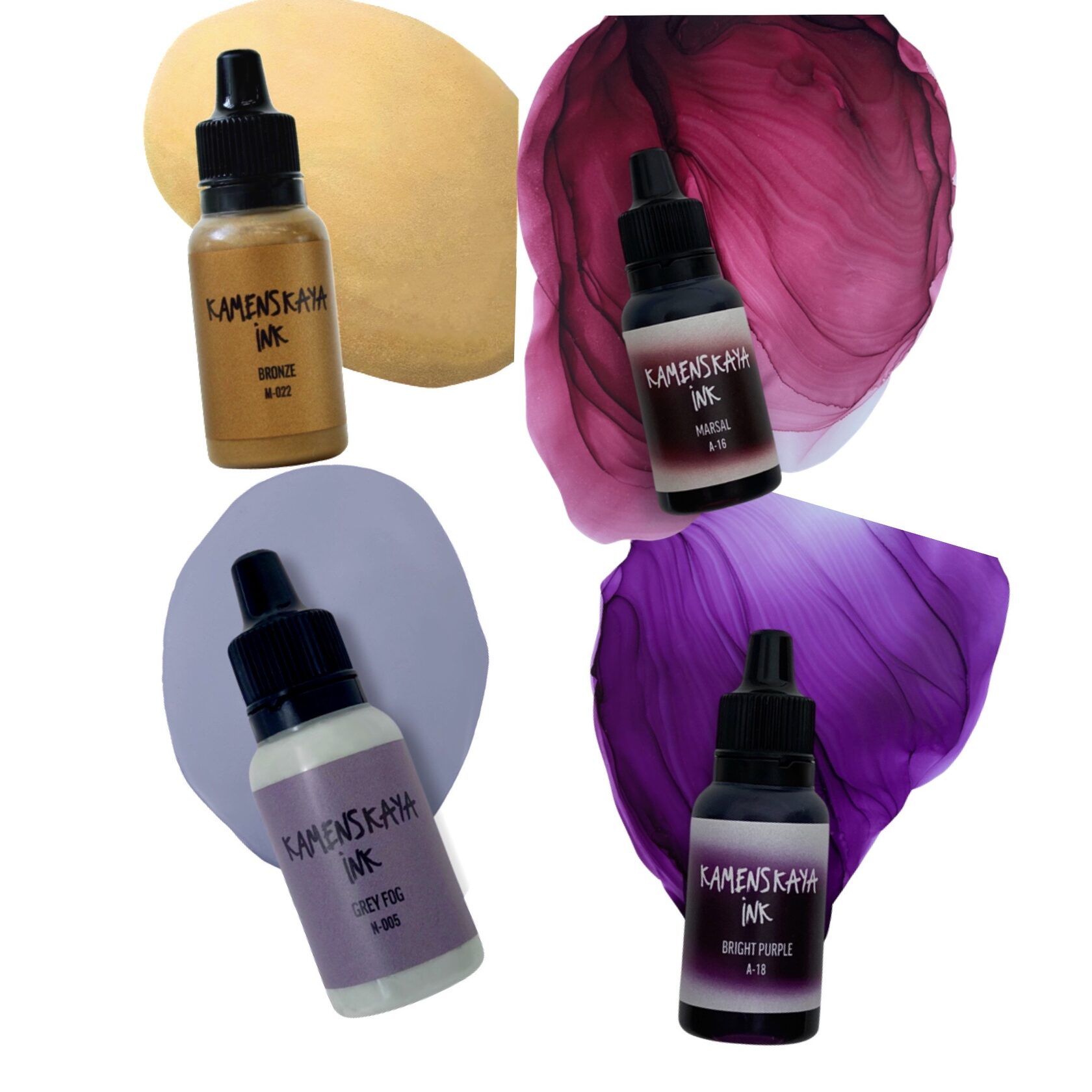 —Набор для рисования спиртовыми (алкогольными) чернилами Kamenskaya Ink №3, 4 x 15 мл K-00-00000572