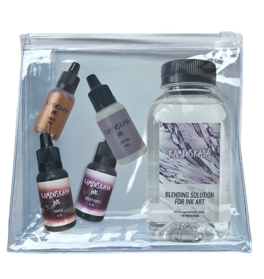 Авторское цветовые комбинации от Полины Каменской. Наборы содержат комбинации чернил из разных категорий. Краски прекрасно смешиваются, дополняя друг друга, прекрасно ложатся на синтетические гладкие поверхности и быстро сохнут. Чернила очень концентрированные и перед использованием должны быть разбавлены раствора для смешивания.