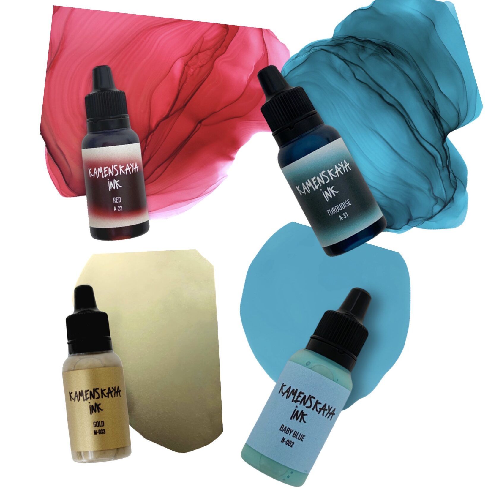 Набор для рисования спиртовыми (алкогольными) чернилами Kamenskaya Ink №4, 4 x 15 мл K-00-00000573