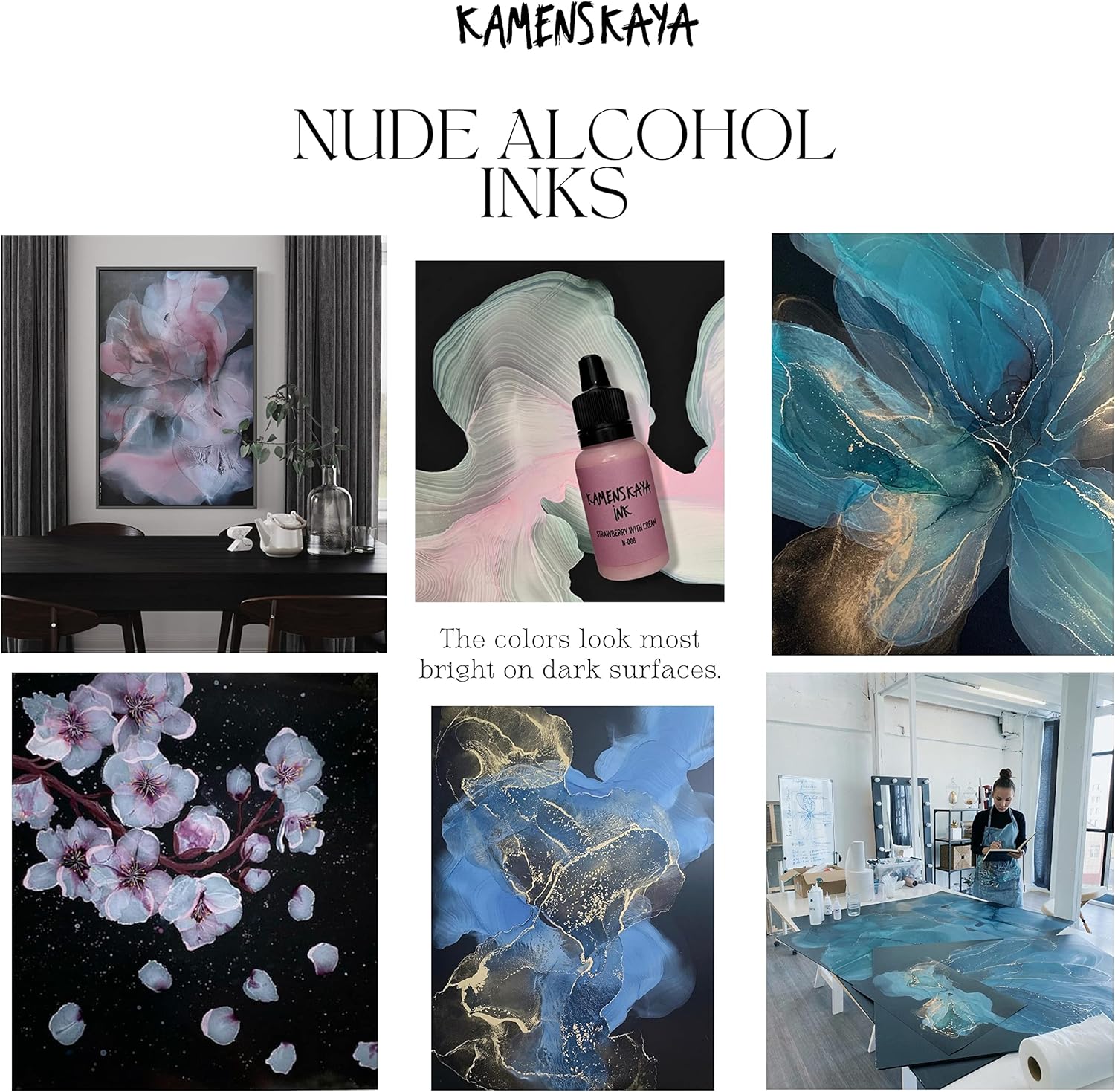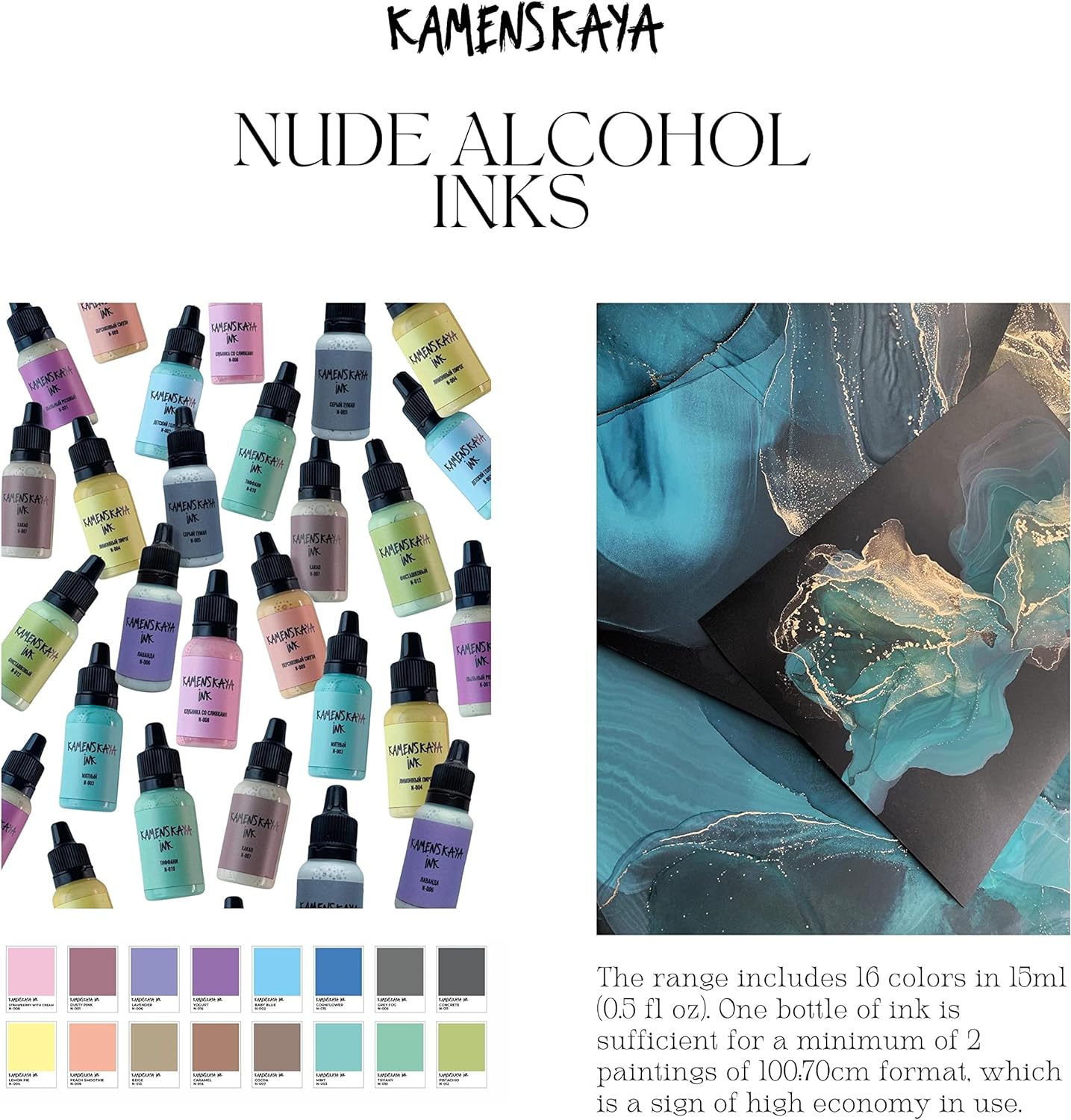 - Pastel Shade Line – спиртовые чернила нежных светлых цветов с бархастистым финишем на основе искусственных красителей и натуральный пигментов для рисования чернилами (Ink Art) и использования в технике Resin Art.