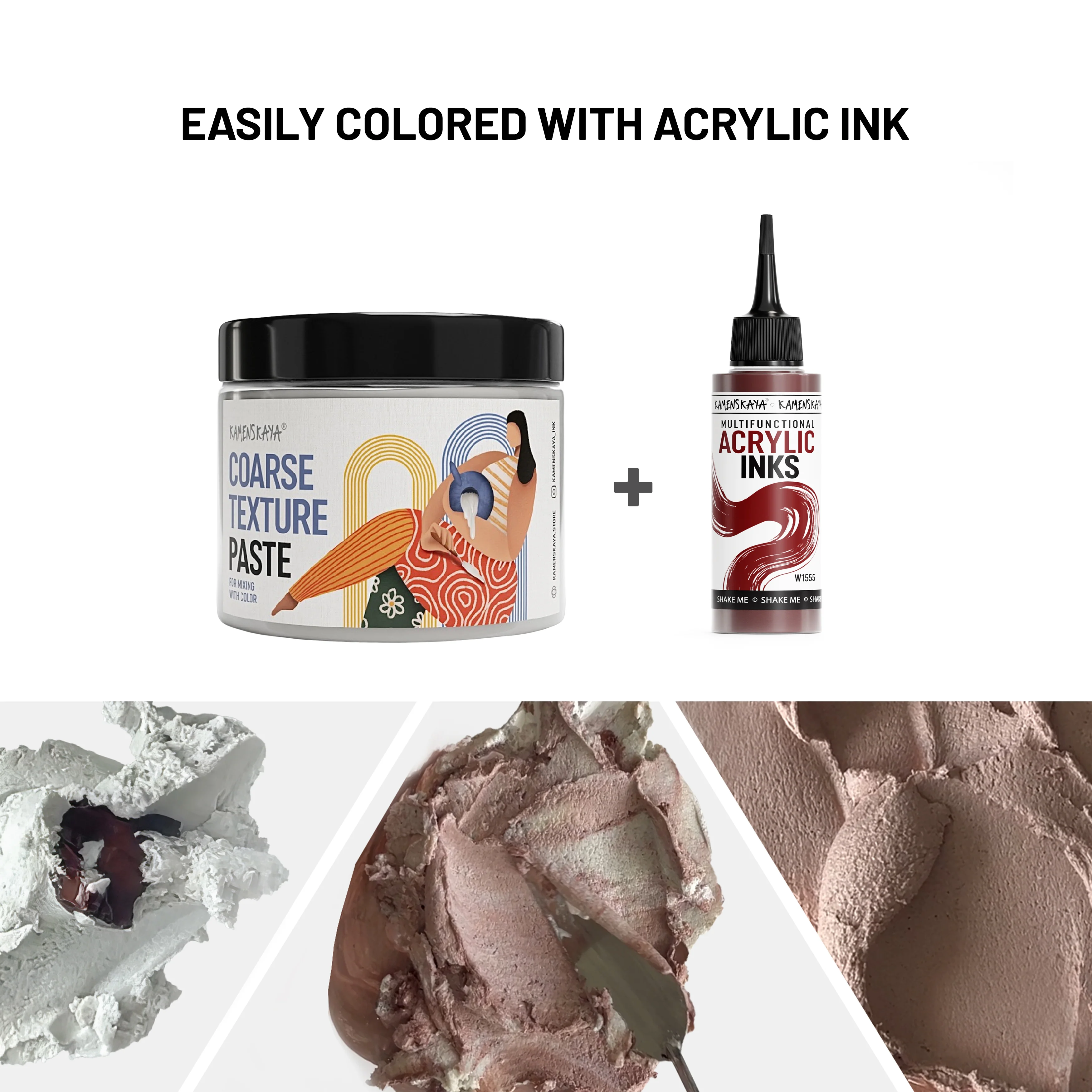 Паста грубой текстуры для смешивания с красками. Моделирующая паста с мелкими частицами кварцевого песка для окрашивания имеет светло-бежевый оттенок и матовый финиш. Консистенция густая, хорошо держит форму, пластичная. Не дает трещин после высыхания, можно создать фактуру высотой до 2 сантиметров. Влагостойкий, легко окрашивается в нужный оттенок акриловыми чернилами и любыми пигментами. Не дает усадки после высыхания.