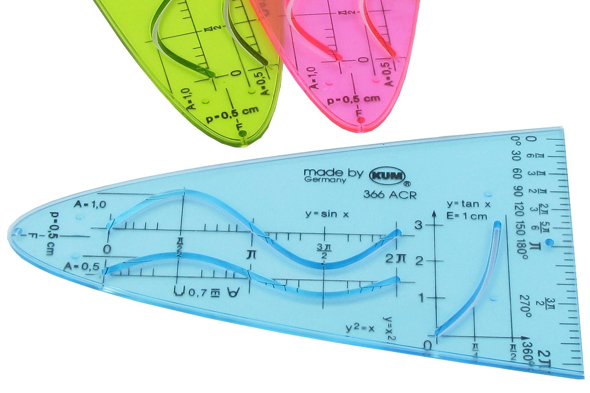 Линейка-трафарет функций: y=x², синус и косинус, касательная кривая. Материал: акрил, 12 x 7 см