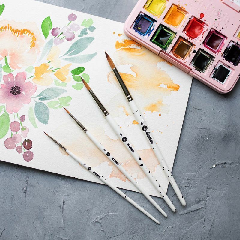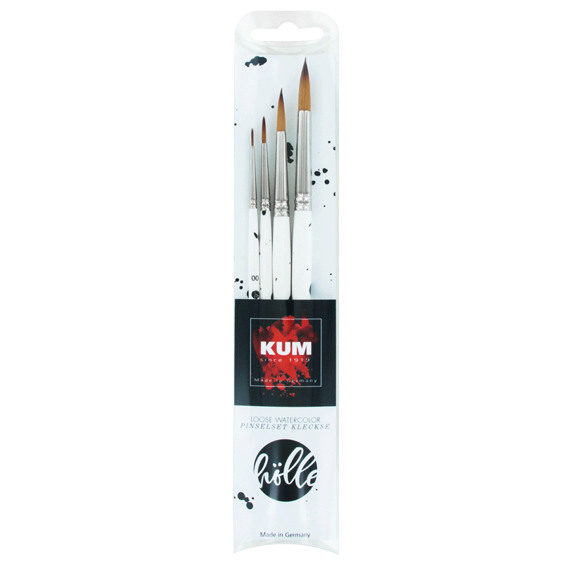 Набор кистей, разработанный вместе с художницей Frau Hölle, специализирующейся на леттеринге и акварельной живописи. Каждая кисть индивидуально окрашена черными брызгами и поэтому представляет собой настоящее уникальное произведение! Кисти изготовлены из специальных высокотехнологичных синтетических волокон и имеют идеально закругленный кончик кисти, что позволяет (при любом размере кисти) прорисовывать мельчайшие детали и работать очень точно.