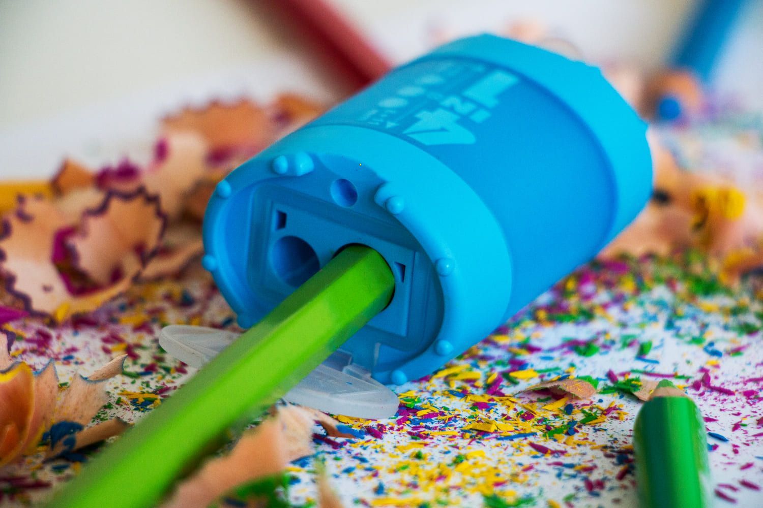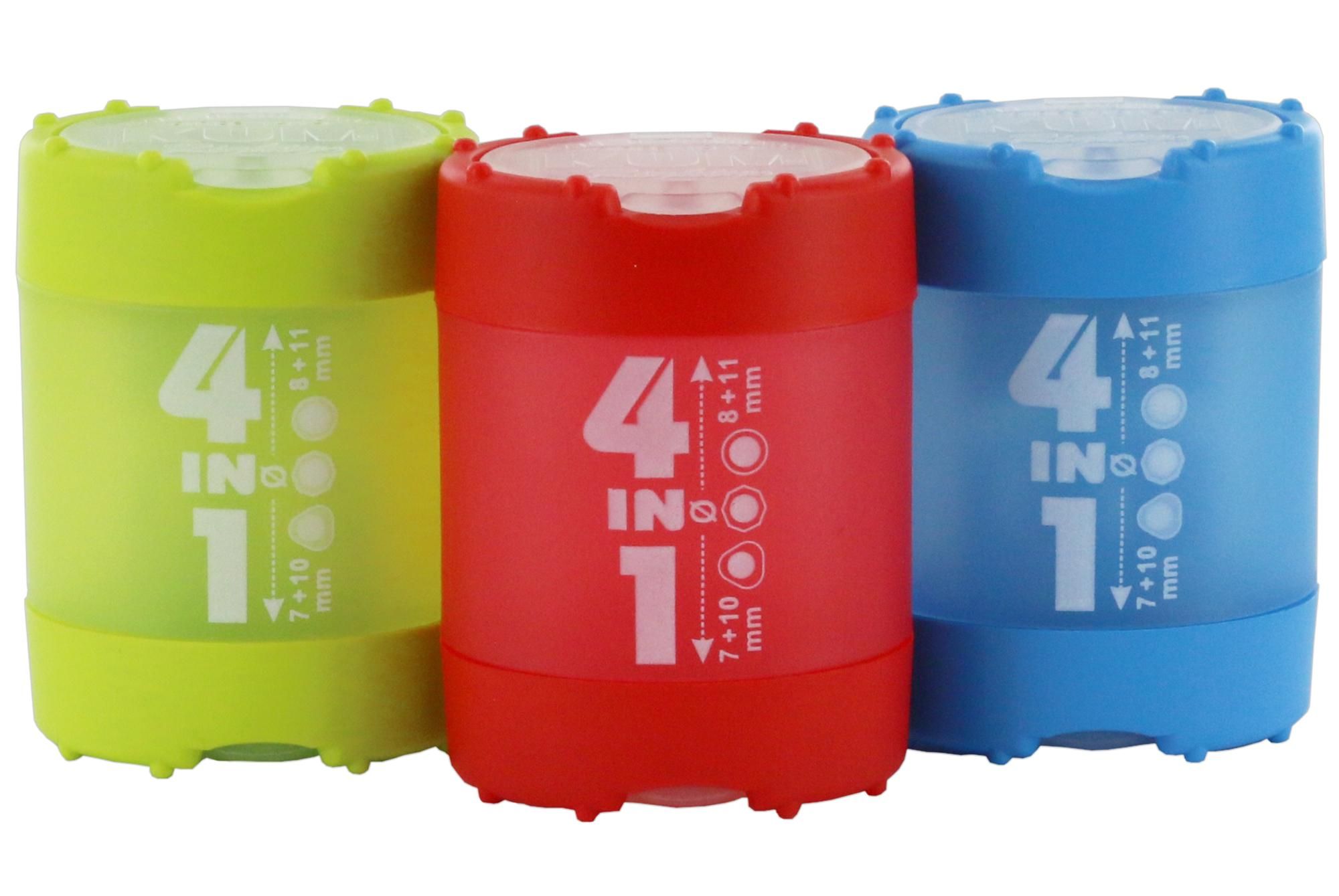 Точилка KUM®4 в 1 с контейнером и крышкой. 4 отверстия, диаметр 7, 8, 10 и 11 мм. Цвет: ассорти