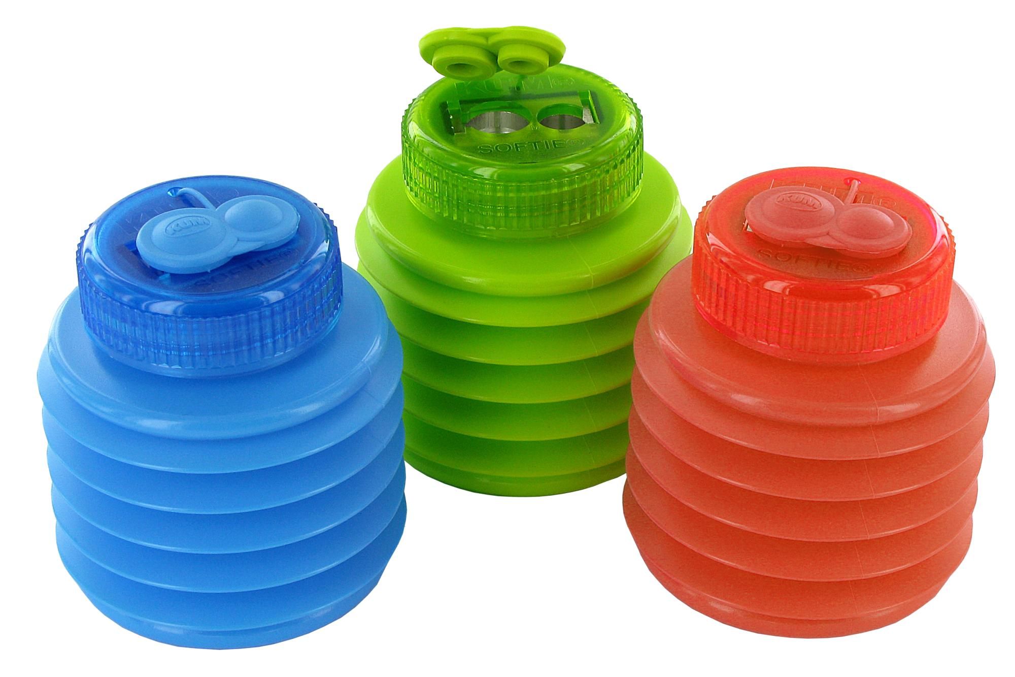 Точилка KUM SOFTIE® Pop с двумя отверстиями и гибким небьющимся контейнером. Лезвия из магниевого сплава. Цвет: ассорти