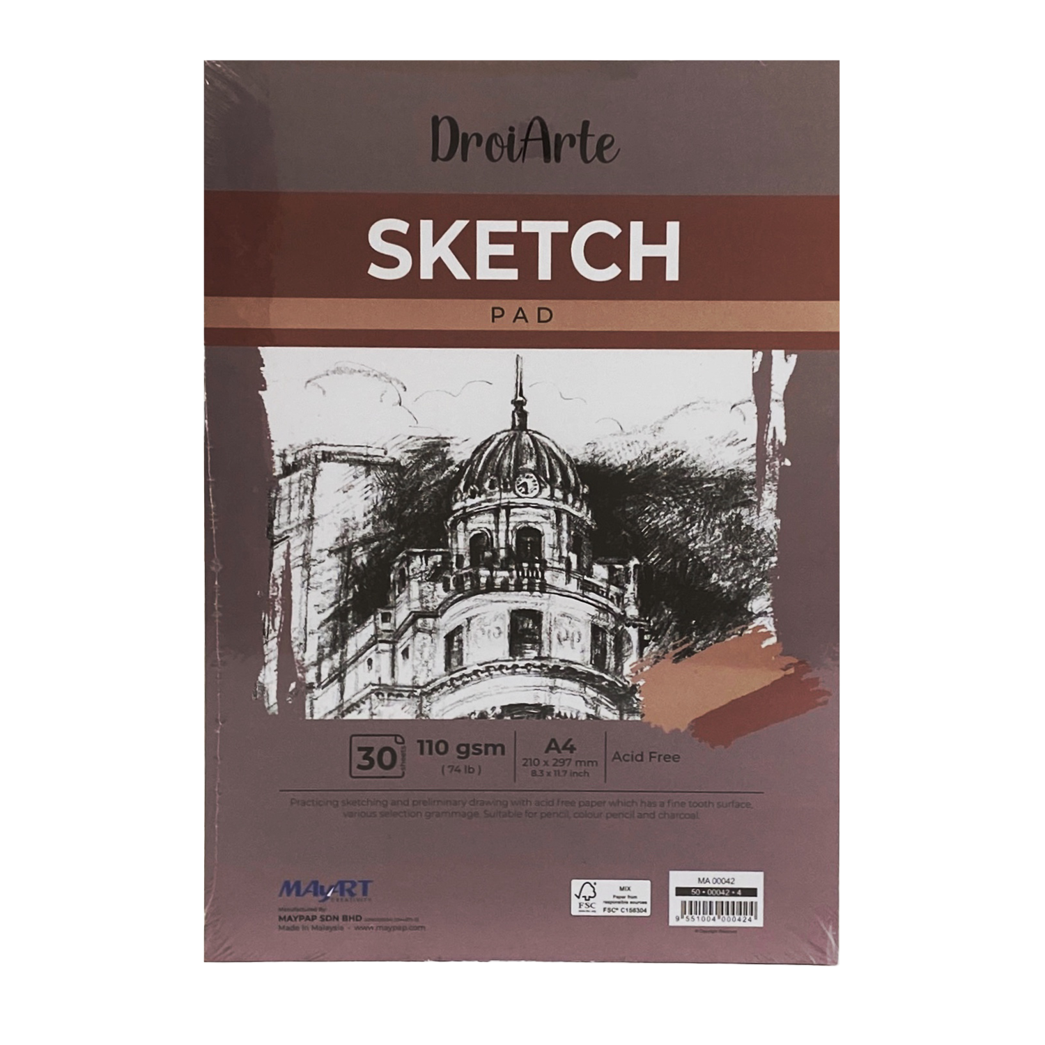 —Альбом для скетчинга MayArt 110 г/м2 A4 297 x 210 мм 30 л, экстрабелые листы, склейка MA00042