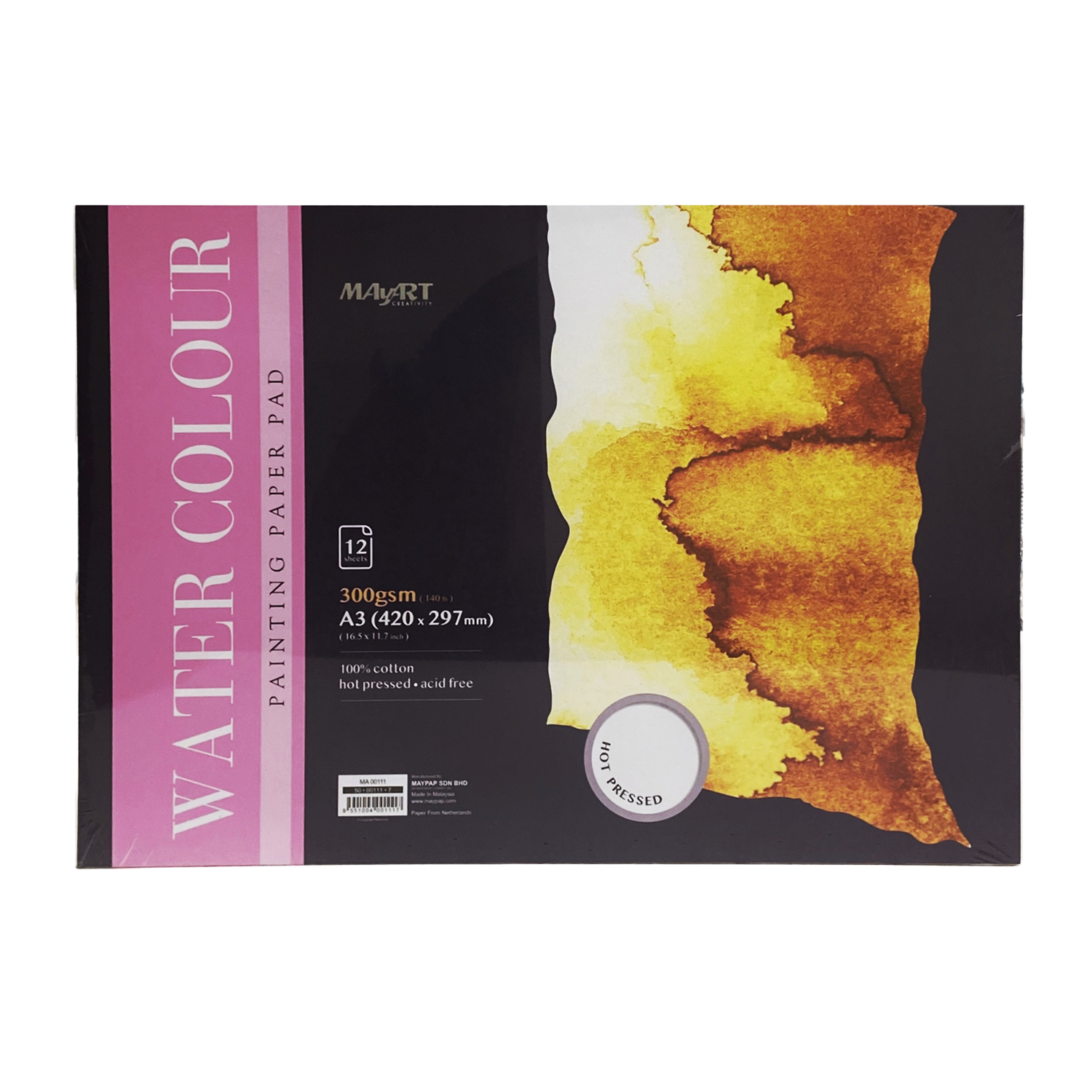 Бумага для акварельной живописи плотностью 300 г/м2, 100% хлопок горячего прессования (гладкая поверхность)