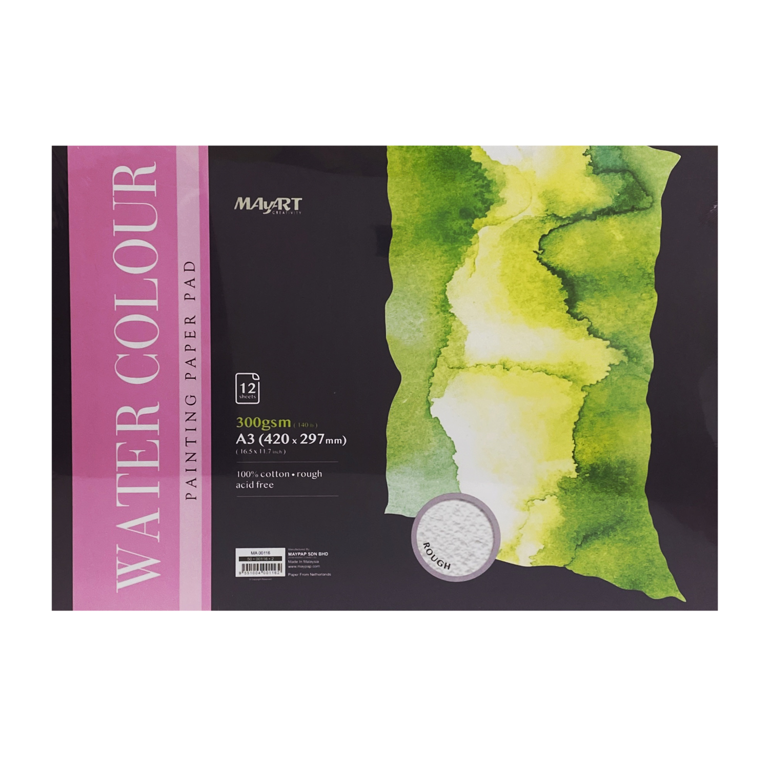 Бумага для акварельной живописи плотностью 300 г/м², 100% грубый хлопок (шероховатая поверхность)