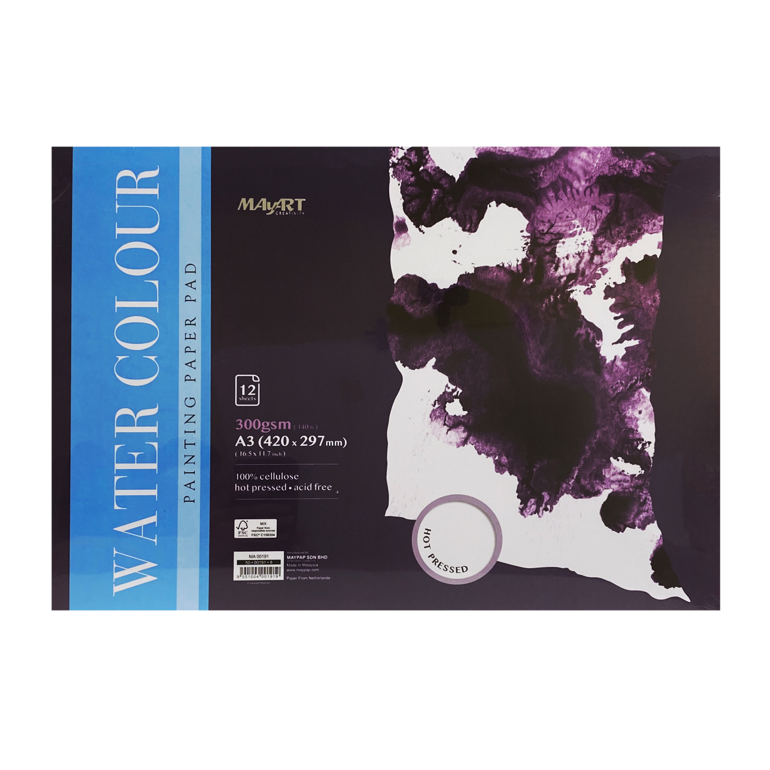 Бумага для акварельной живописи плотностью 300 г/м², 100% целлюлоза горячего прессования (гладкая поверхность)