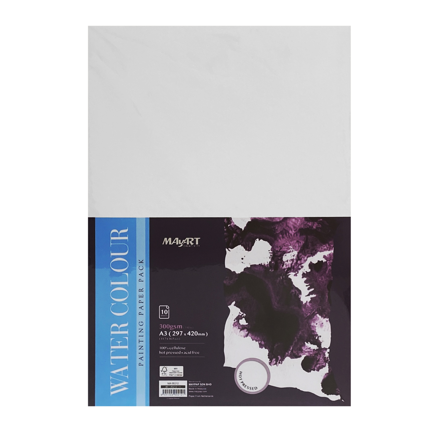 Бумага для акварельной живописи плотностью 300 г/м2, 100% целлюлоза горячего прессования (гладкая поверхность)