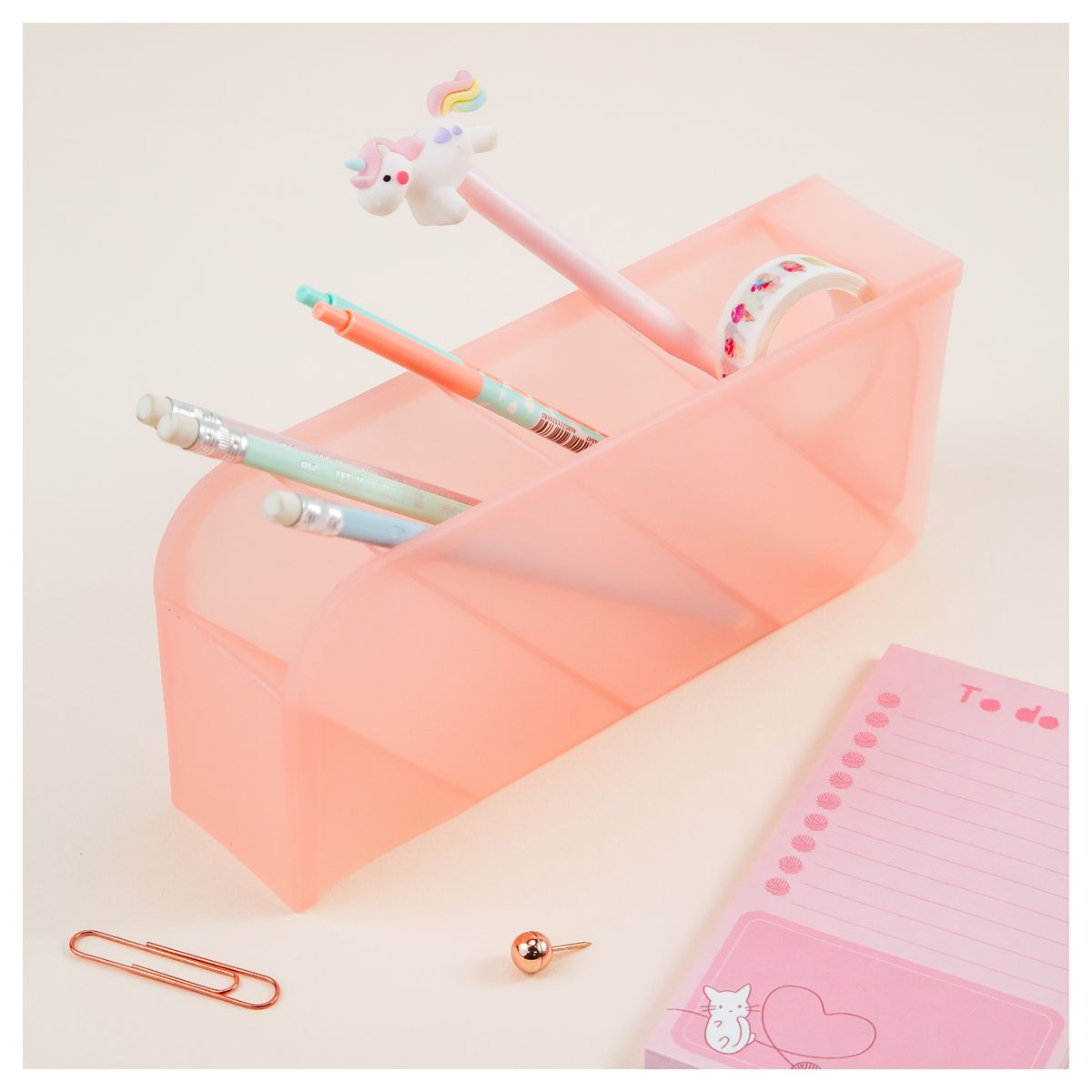 Настольная подставка MESHU на 4 секции в розовом цвете предназначена для хранения пишущих принадлежностей и канцелярских мелочей.