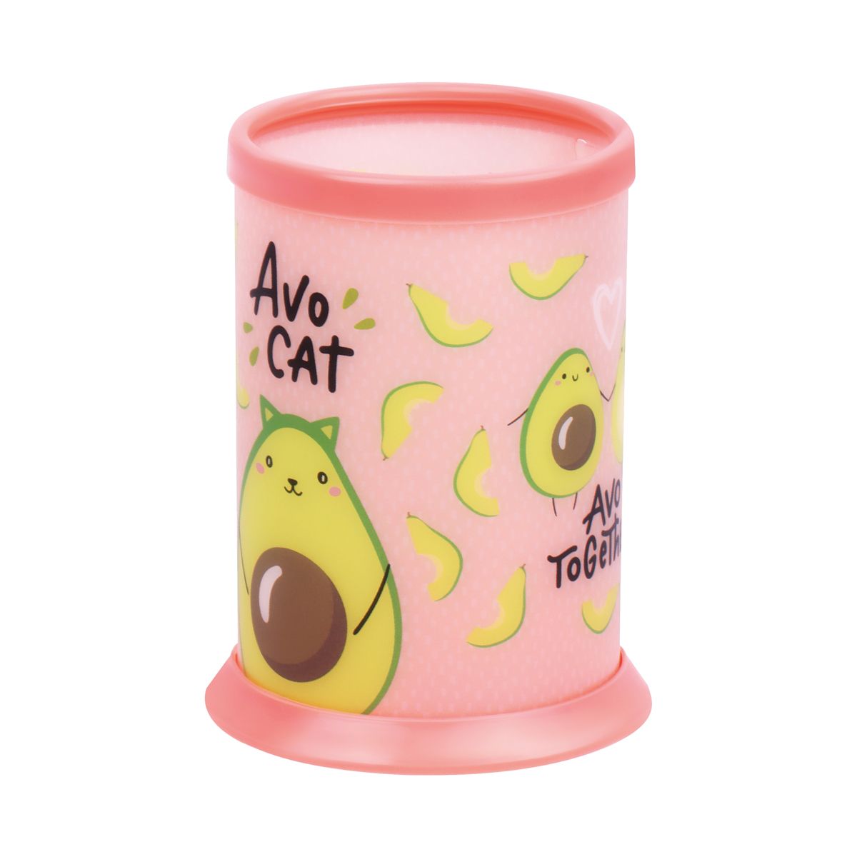 Подставка-стакан MESHU Avocat в милом дизайне предназначена для хранения пишущих принадлежностей. Размер круглой подставки – 8.5 x 12 см. Подставка изготовлена из пластика. Упакована в ОПП пакет с европодвесом. Схема сборки подставки указана на упаковке.