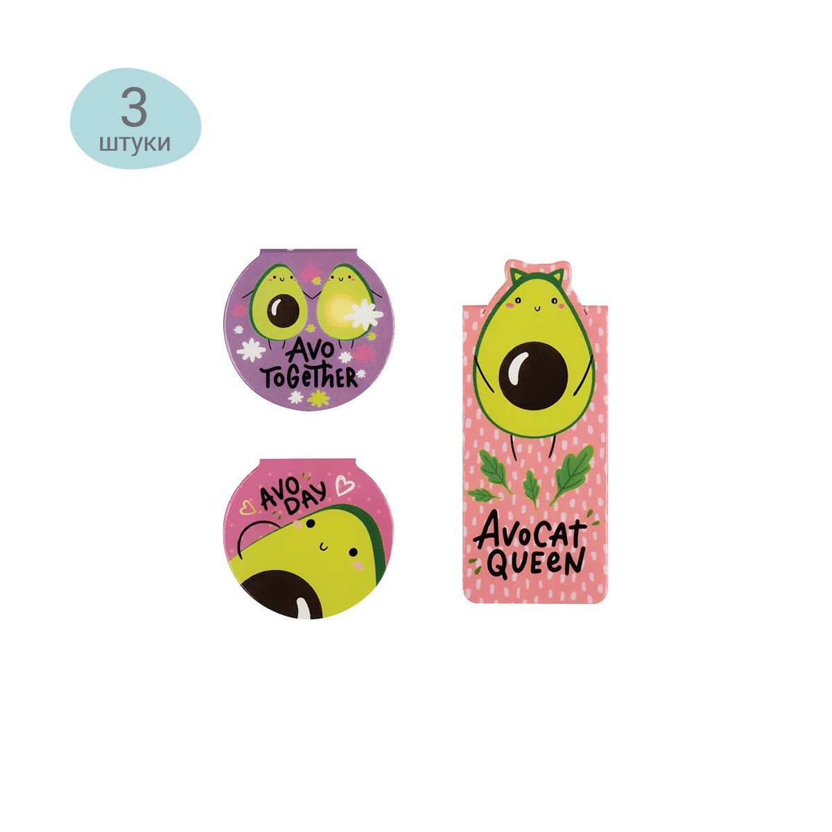 Полностью магнитное основание позволит крепко зафиксировать закладку в нужном месте. В наборе 3 закладки разных форм и размеров в милых современных дизайнах. Это сделает процесс чтения или учебы еще более увлекательным. Набор упакован в пакет.