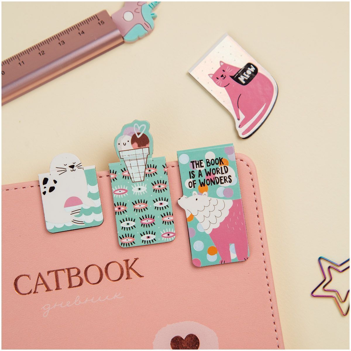 Полностью магнитное основание позволит крепко зафиксировать закладку в нужном месте. В наборе 4 закладки разных форм и размеров в милых современных дизайнах. Это сделает процесс чтения или учебы еще более увлекательным. Набор упакован в пакет.