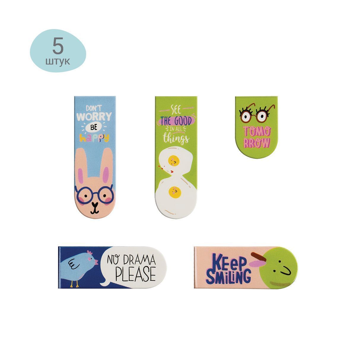 Полностью магнитное основание позволит крепко зафиксировать закладку в нужном месте. В наборе 5 закладок разных форм и размеров в милых современных дизайнах. Это сделает процесс чтения или учебы еще более увлекательным. Набор упакован в пакет.