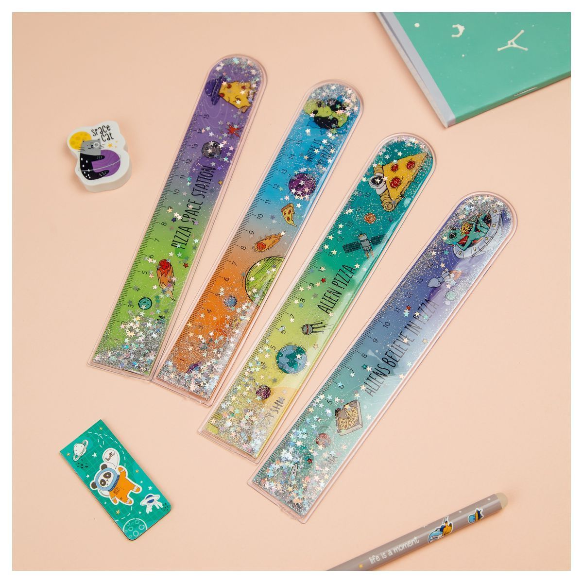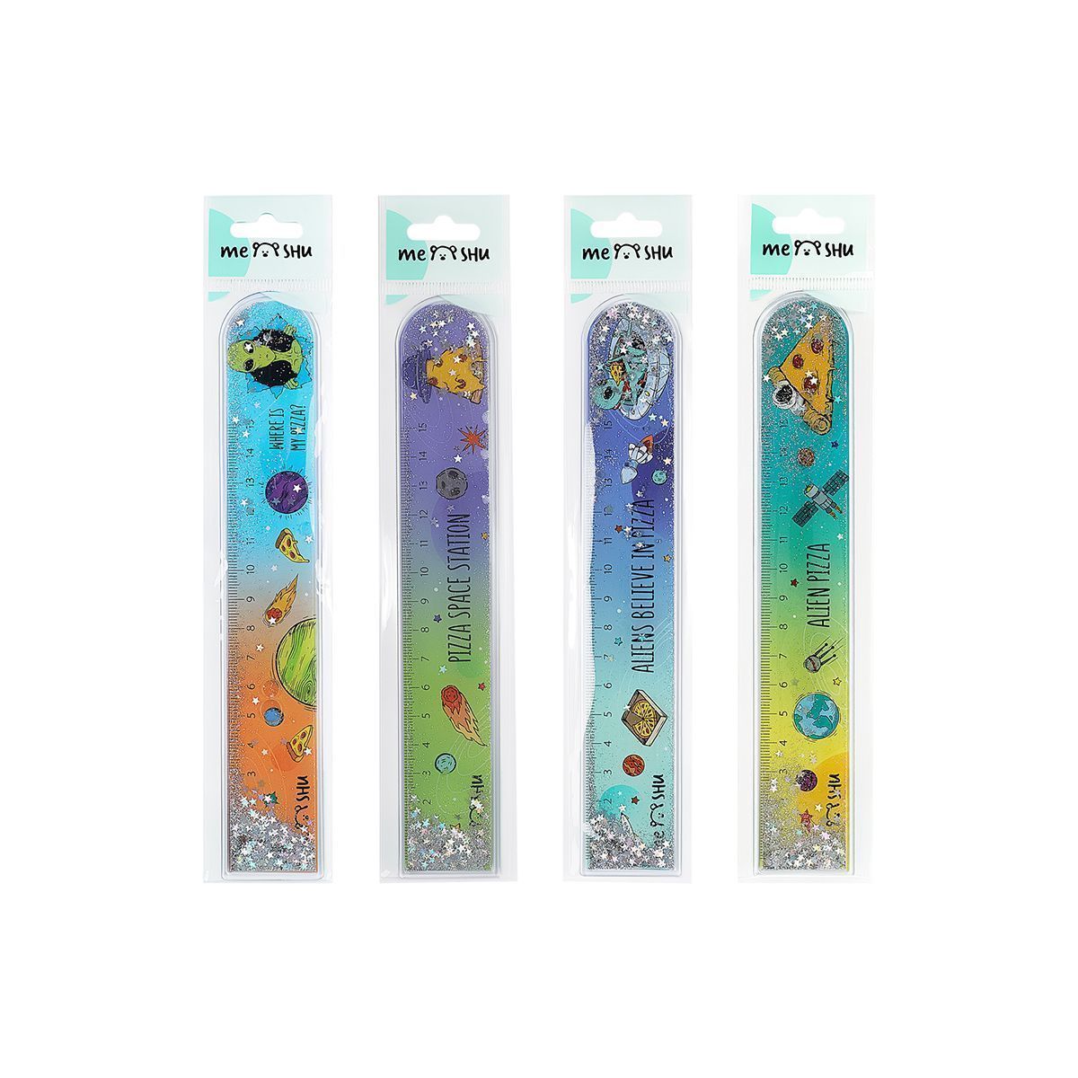 Линейка MESHU c блёстками Alien pizza создаст прекрасное настроение для учебы и творчества.