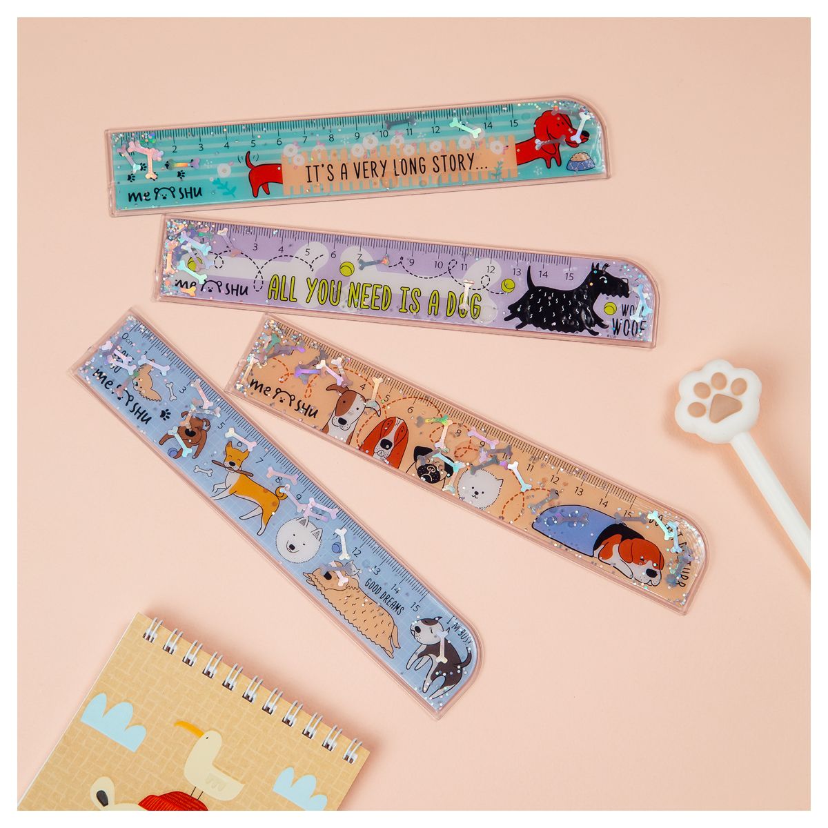 Линейка MESHU c блестками Best friend создаст прекрасное настроение для учебы и творчества. Длина шкалы 15 см, ширина линейки – 35 мм. Гибкая линейка изготовлена из ПВХ. Представлено 4 милых дизайна с собаками. Линейка предназначена для чертежных работ. Упакована в пакет.