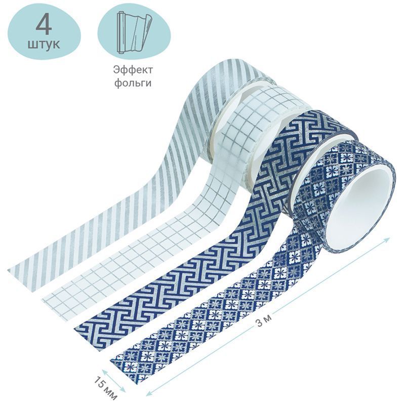 Набор клейких декоративных лент MESHU "Silver shinet" 4 шт RE-MS_36917