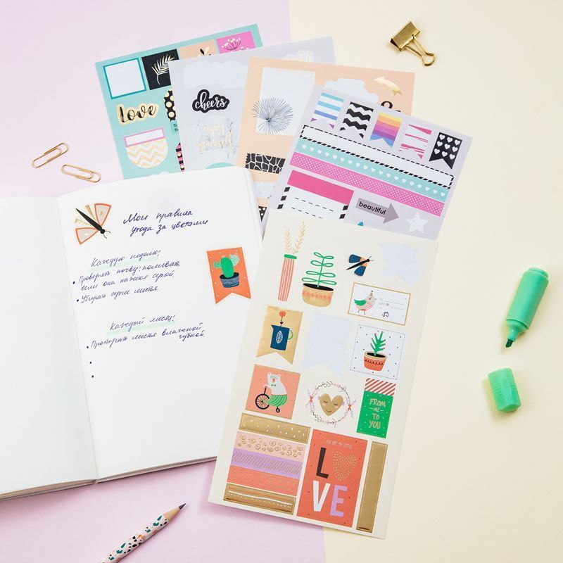 Набор состоит из 5 листов, 150-200 наклеек размером 210*120 мм и включает в себя 150-200 наклеек. Яркие современные дизайны сделают творческий процесс увлекательным и подарят отличное настроение.