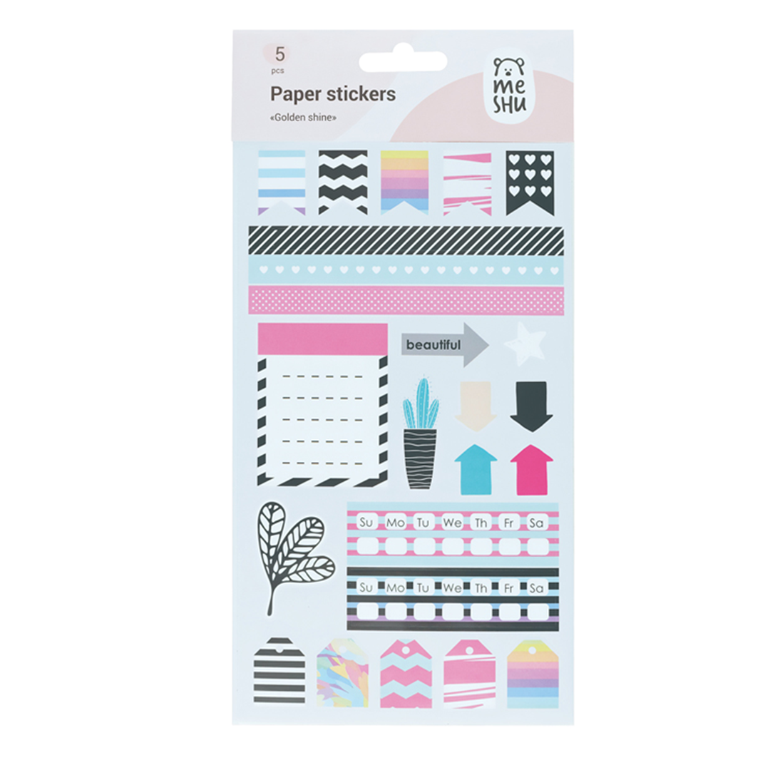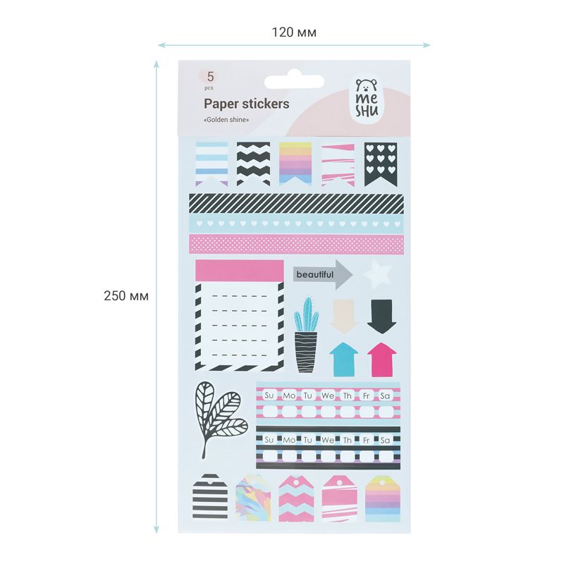 Наборы бумажных наклеек MESHU Golden shine идеально подходят для оформления записей, открыток, поделок, а также украшения канцтоваров, телефонов, ноутбуков, предметов интерьера.