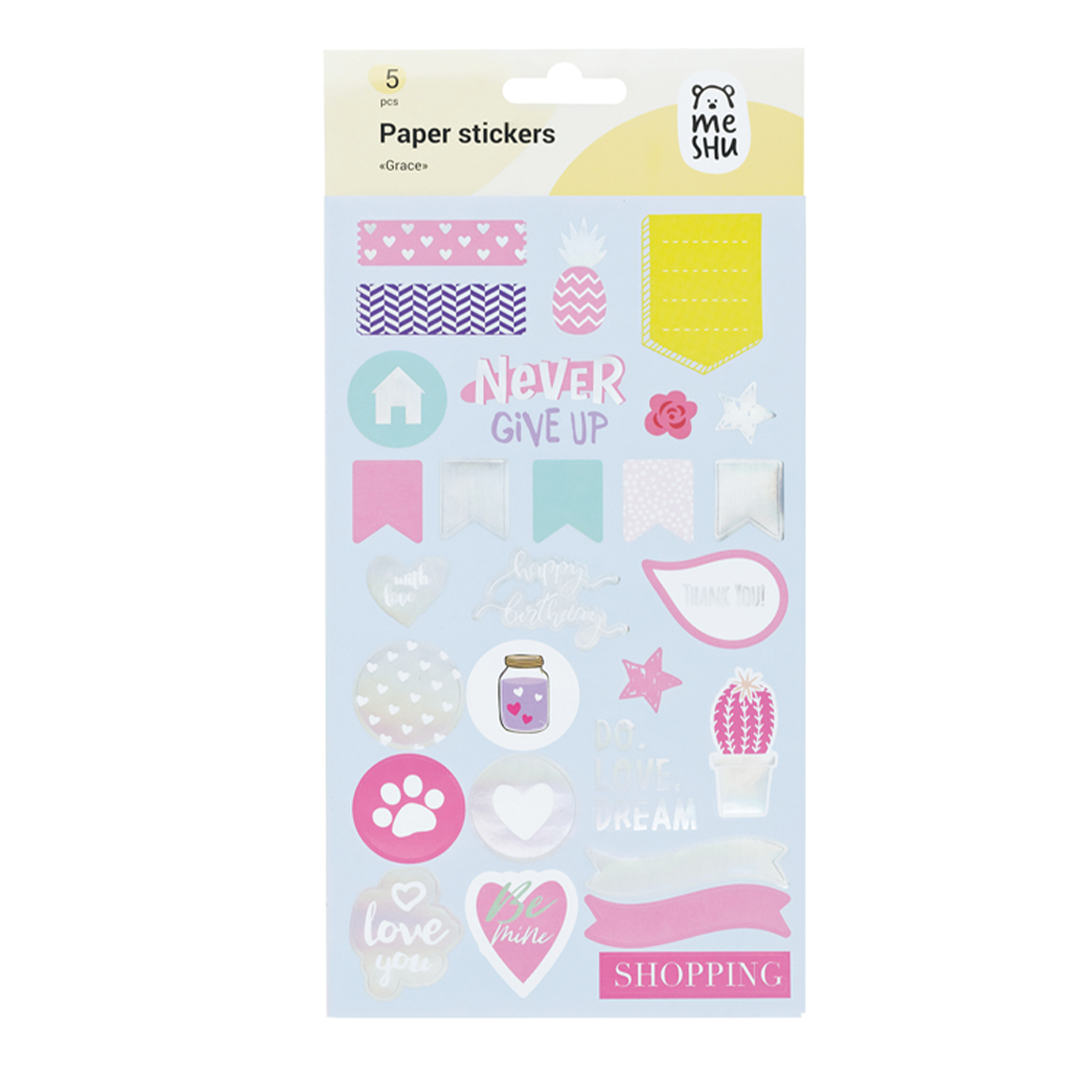 Наборы бумажных наклеек MESHU Grace идеально подходят для оформления записей, открыток, поделок, а также украшения канцтоваров, телефонов, ноутбуков, предметов интерьера.