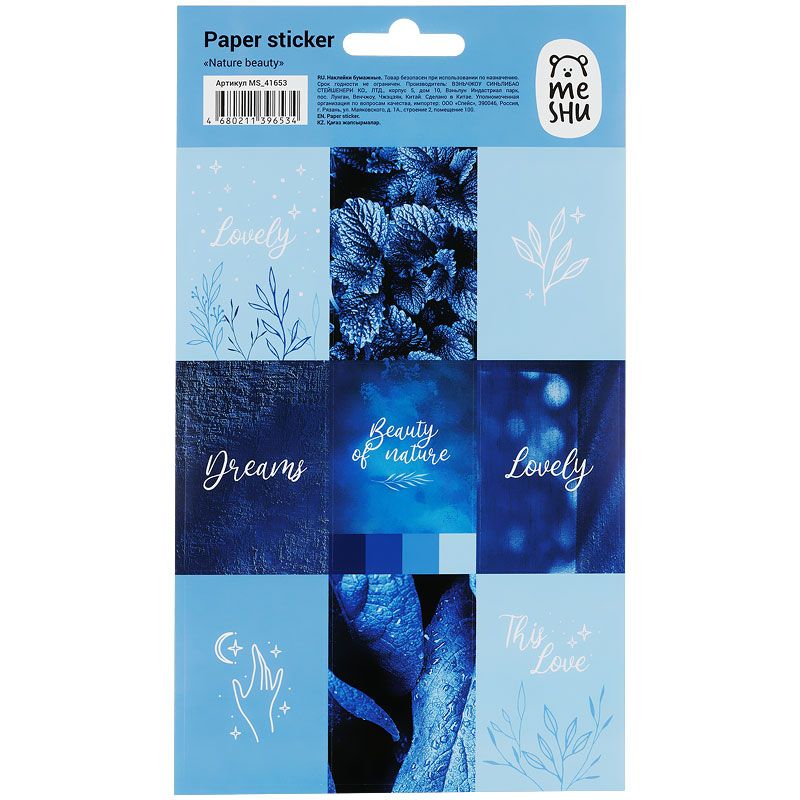 Бумажные наклейки подойдут также для украшения канцтоваров, открыток, поделок, телефонов, ноутбуков, предметов интерьера. Яркие современные дизайны от MESHU сделают творческий процесс увлекательным и подарят отличное настроение. Наклейки упакованы в пакет с европодвесом.