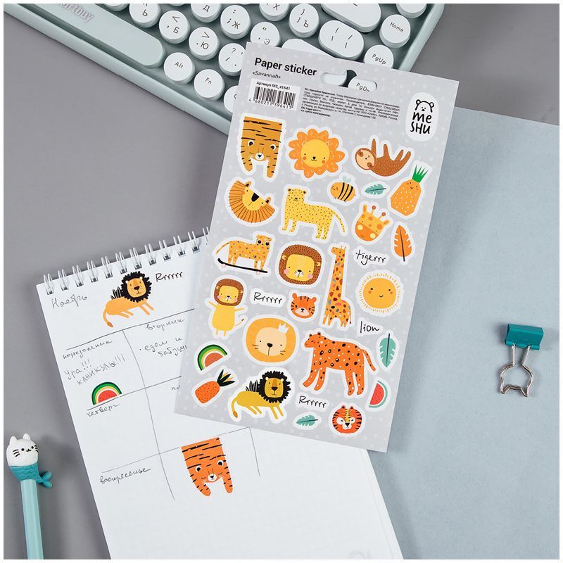 Бумажные наклейки MESHU Savannah – отличный помощник в креативном оформлении записей в блокнотах и дневниках.