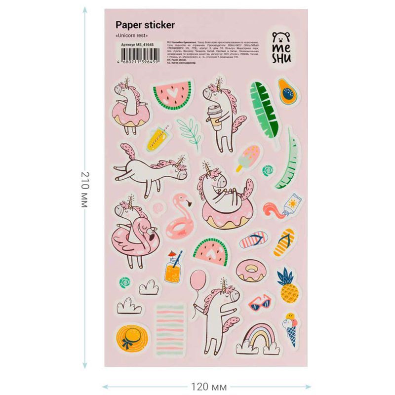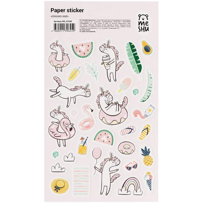 Бумажные наклейки MESHU Unicorn rest – отличный помощник в креативном оформлении записей в блокнотах и дневниках.