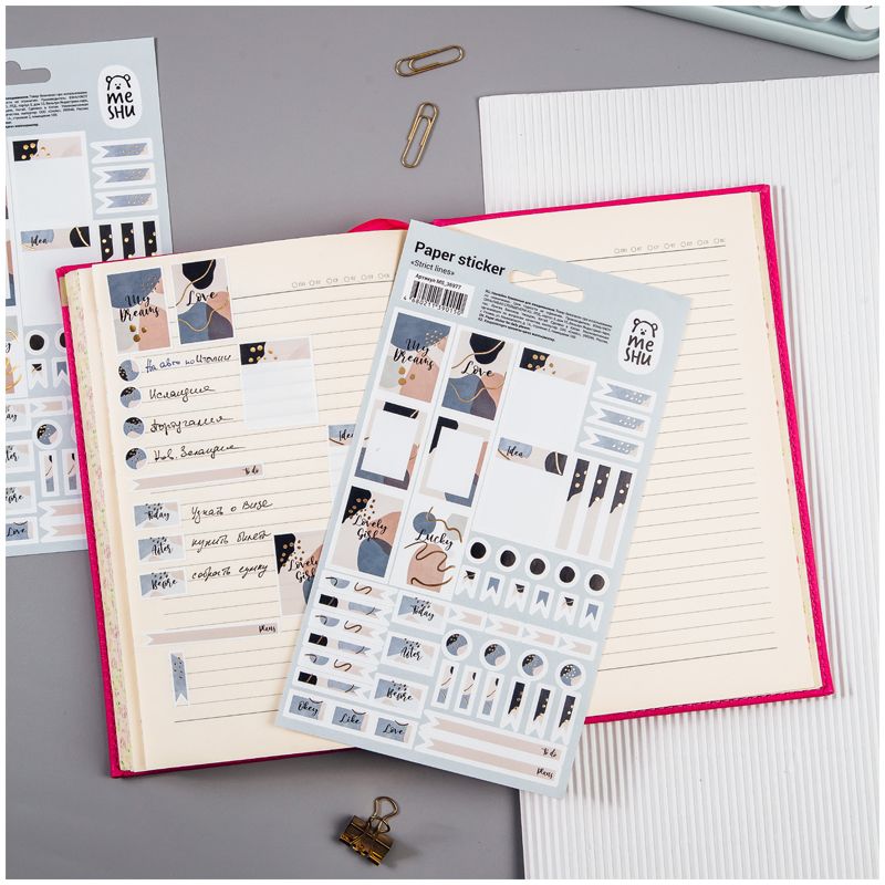 Бумажные наклейки для ежедневников MESHU Strict lines – отличный помощник в креативном оформлении записей в блокнотах и дневниках.
